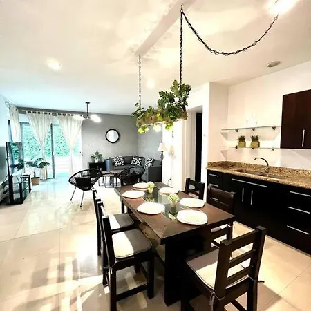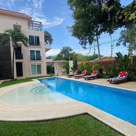100 m^2 daire, Playa del Carmen havalimanına 5 km yakınlıkta bulunmaktadır. Tesiste açık havuz, bahçe ile özel yüzme havuzu bulunmaktadır.